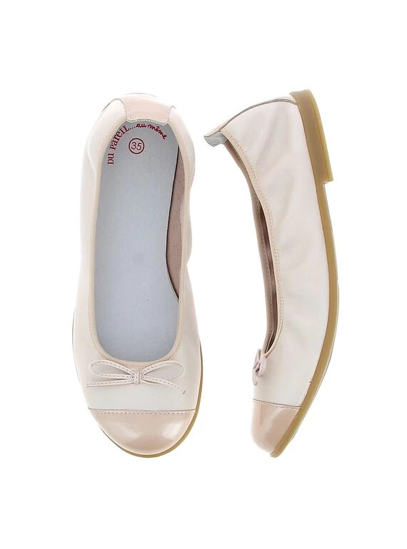 Ballerine en cuir rose pâle rehaussée d’un noeud sur le devant, ainsi que d’une protection à l’avant en cuir beige. Le décolleté est plus resserré pour un meilleur maintien du pied. Doublure et première en cuir pour un environnement sain et plus de respirabilité. Semelle souple en élastomère.