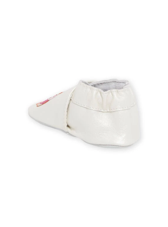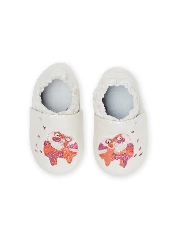 Chaussons blancs à motifs oiseaux.