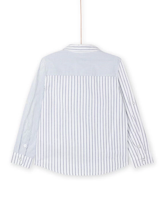 Chemise blanche et bleue à imprimé à rayures.