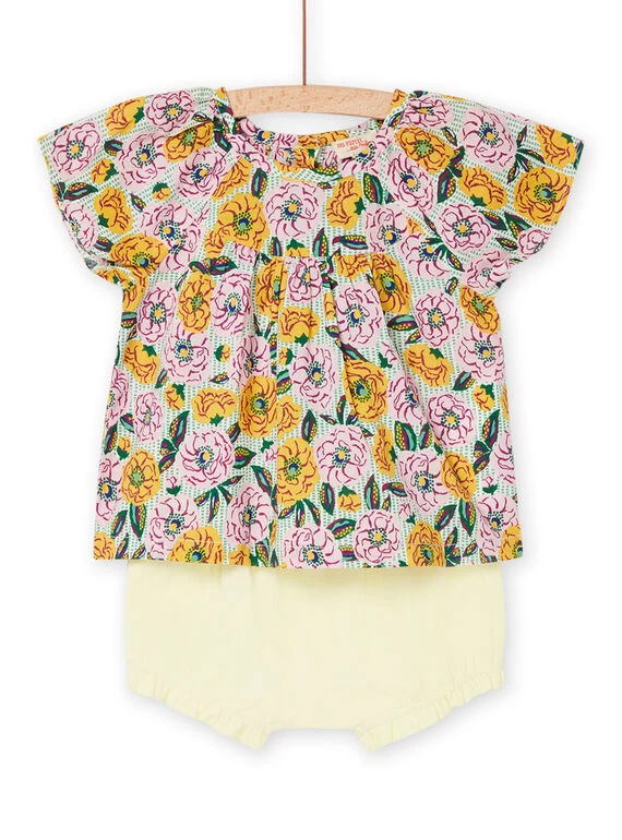 Ensemble chemisier et bloomer écru et violet.
