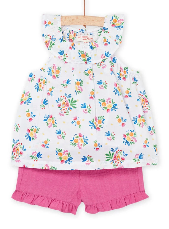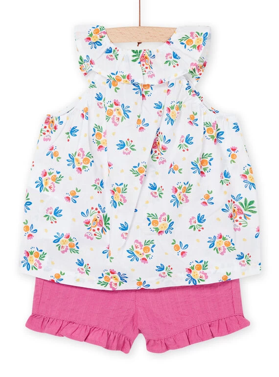 Ensemble débardeur et short blanc à imprimé fleurs.