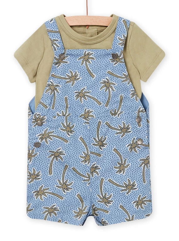 Ensemble T-shirt vert pistache et salopette vert pistache et bleue.