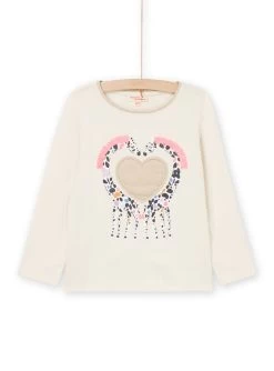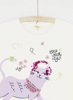 T-shirt écru à Animation Chat Fille