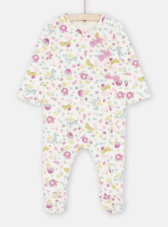 Découvrez notre adorable grenouillère écrue à imprimé jungle pour bébé fille. Cette grenouillère associe confort et style, créant une tenue parfaite pour les aventures imaginaires dans la jungle. La grenouillère est confectionnée dans un tissu doux et délicat, offrant une sensation agréable sur la peau délicate de votre bébé. La couleur écrue ajoute une touche de douceur et de neutralité à l’ensemble. L’imprimé jungle est plein de vie et de créativité. La grenouillère est dotée de boutons-pression à l’avant pour un habillage et un déshabillage faciles, ainsi que de manches longues pour garder votre bébé au chaud et confortable.