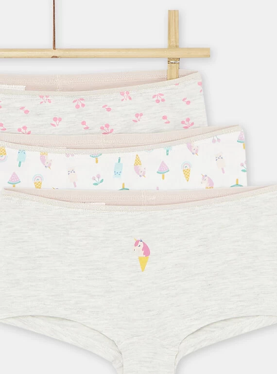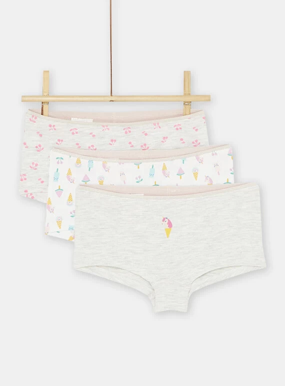 Découvrez notre élégant lot de 3 shortys pour fille, dans des tons gris chiné et écru ! Ce lot vous offre des options polyvalentes et tendance pour compléter la garde-robe de votre petite princesse.