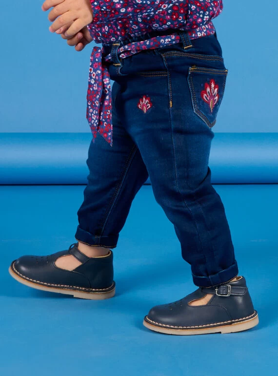 Pantalon en maille denim avec ceinture à imprimé fleuri amovible.