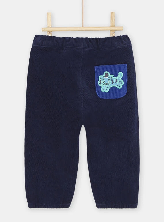 Découvrez notre adorable pantalon en velours bleu foncé pour bébé garçon ! Ce pantalon est à la fois confortable, doux et élégant, parfait pour habiller votre petit prince avec style. Le pantalon est fabriqué en velours doux de qualité, offrant une sensation agréable au toucher et une chaleur supplémentaire pendant les mois plus froids. La couleur bleu foncé lui donne un aspect raffiné et polyvalent, s’adaptant facilement à différentes tenues.