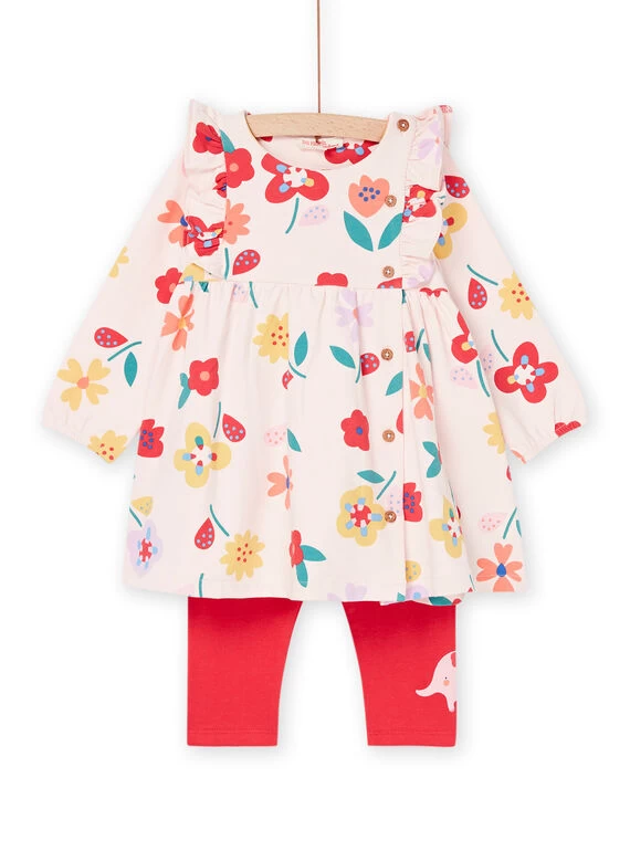 Ensemble robe et legging rose dragée à imprimé fleurs.