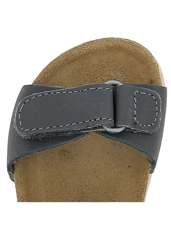 Sandale bébé garçon en cuir gris dotée d’un système de fermeture à double bande auto-agrippante. Semelle intérieure anatomique privilégiant le confort. Semelle exclusive DP…am en élastomère décorée d’étoiles pour une touche fantaisie. Fabrication européenne.