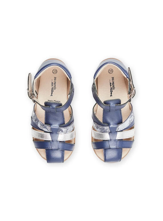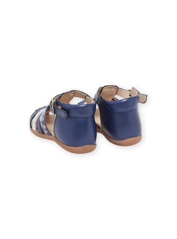 Sandales montantes bleu marine en cuir.
