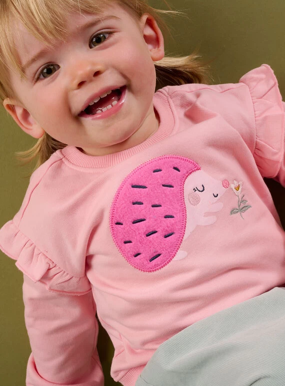 Sweat rose à motif hérisson.