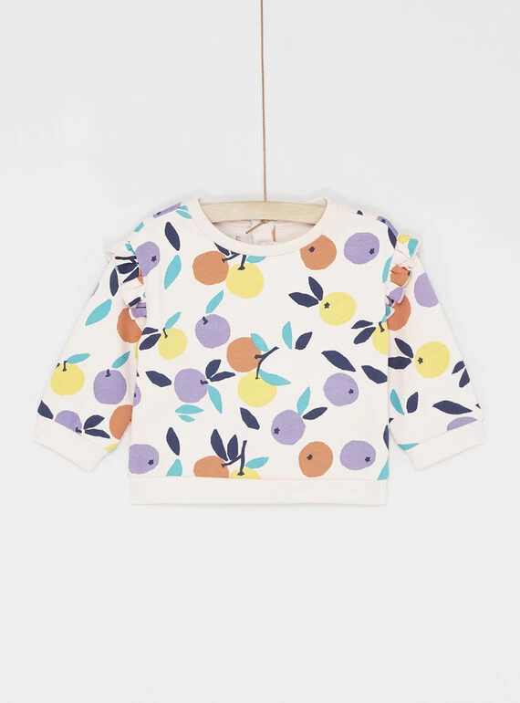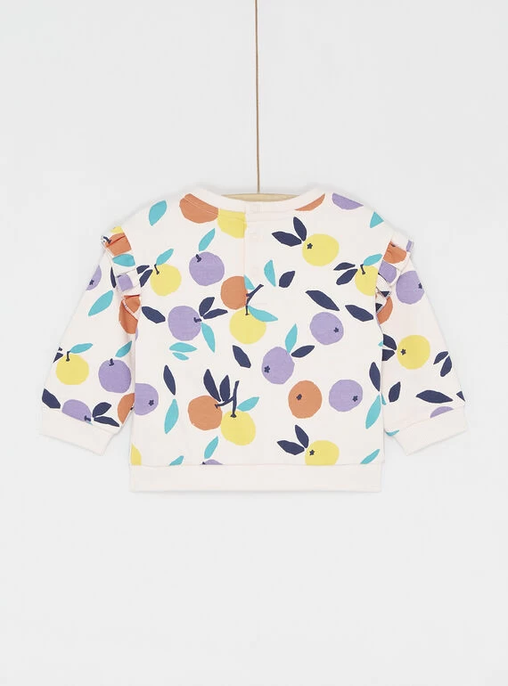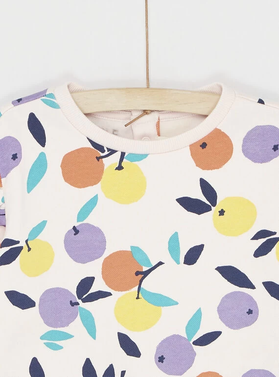 Ajoutez une touche de fraîcheur et de fantaisie à la garde-robe de votre enfant avec ce charmant sweat rose pâle à imprimé fruits.
