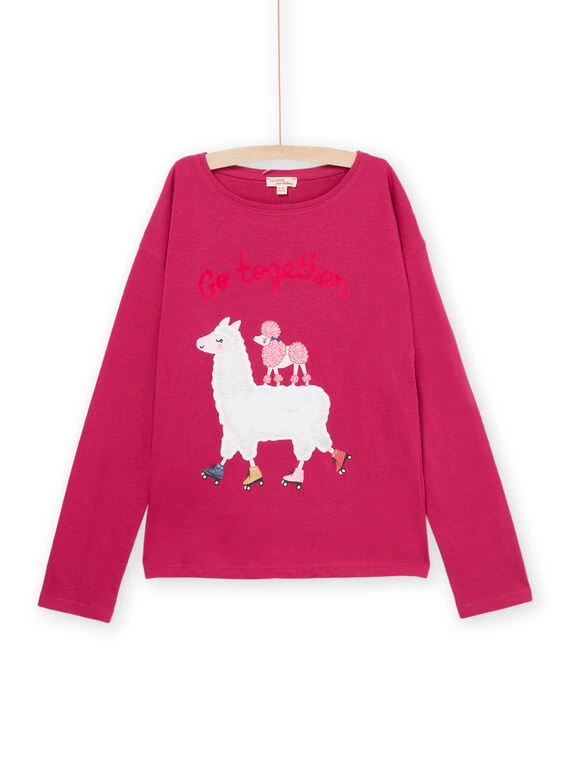 T-shirt à manches longues à imprimé lama et chien.
