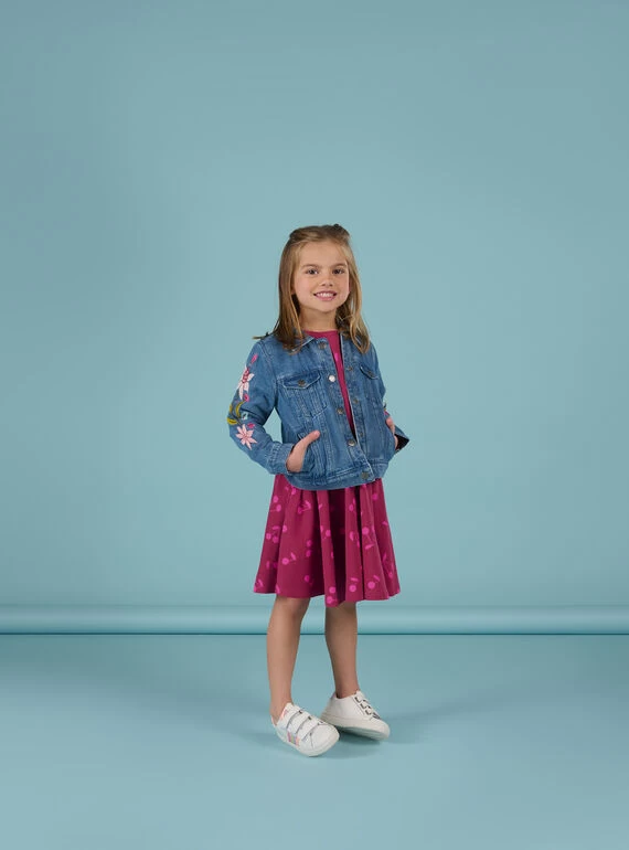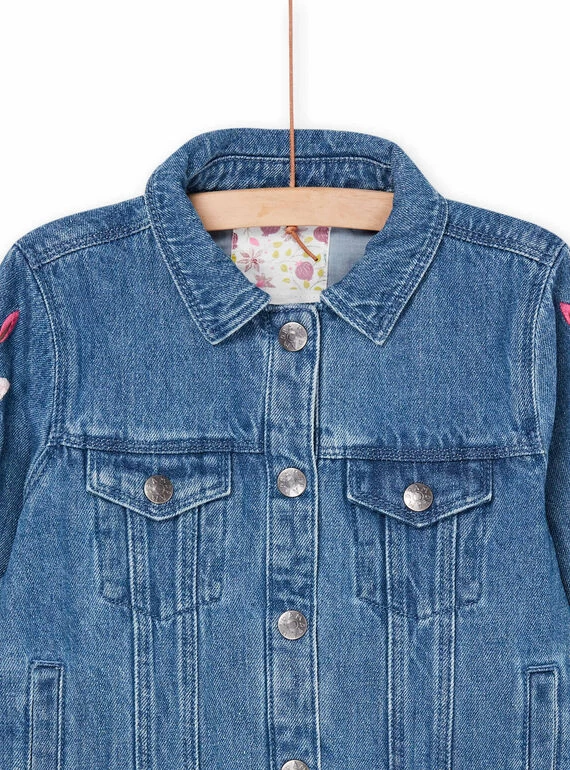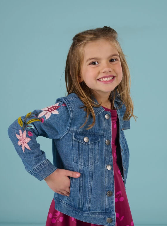 Veste en jean à broderies fleuries.